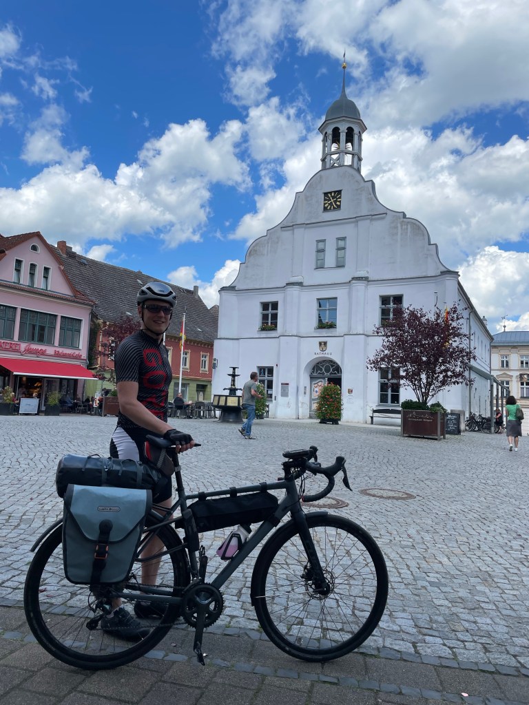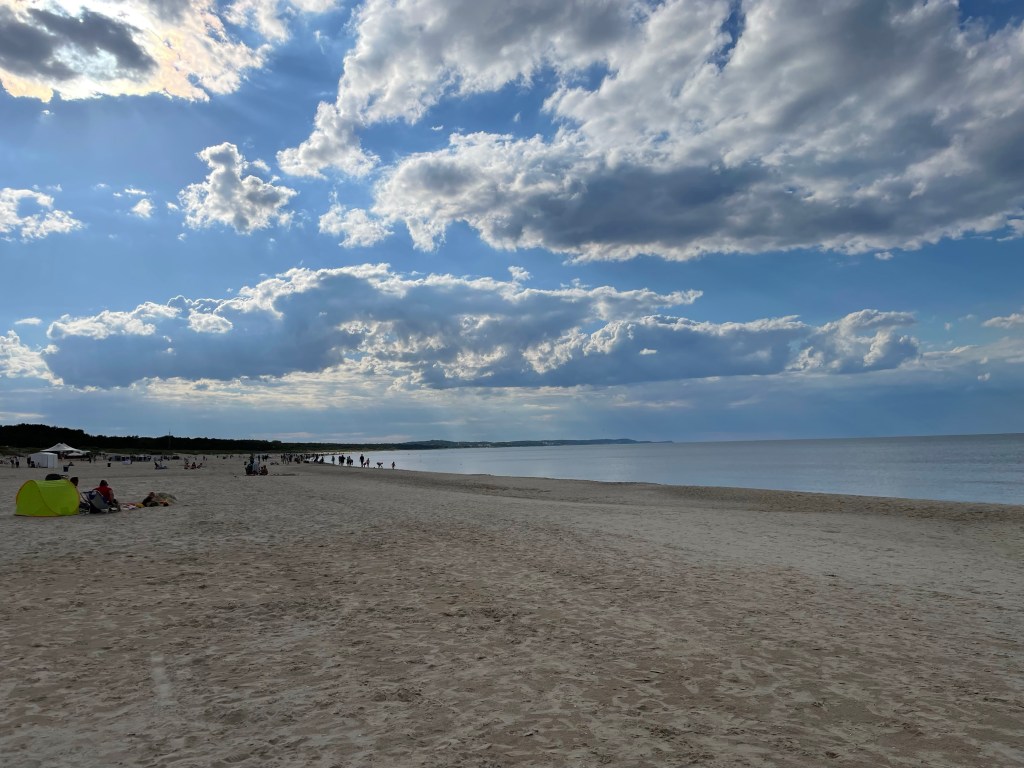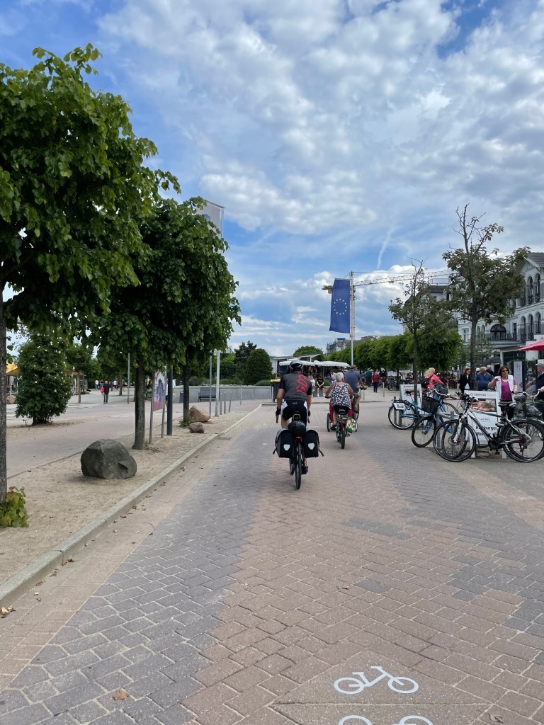 Pünktlich um kurz nach neun ging es heute Morgen bei strahlendem Sonnenschein los, nachdem es sich in der Nacht abgeregnet hatte. Nach einem kurzen Abstecher in die Altstadt von Stralsund fuhren wir in Richtung Küste, bevor der parallel zur Bundesstraße verlaufende Fahrradweg sich als 20 km lange Kopfsteinpflaster-Straße (vermutlich die alte Allee zwischen Stralsund und Greifswald) entpuppte. Ein echter Belastungstest für unsere Hintern und meine Nerven! In Greifswald konnten wir glücklicherweise einen Cappucino am Museumshafen genießen, bevor es auf sehr guten Radwegen weiterging bis zur Wiecker Klappbrücke. Danach nahmen wir den direkten Weg über einige Dörfer nach Wolgast. Bei viel Gegenwind und einigem Auf und Ab haben wir nochmal alles gegeben, ehe wir in Wolgast über die Peenebrücke zur Insel Usedom fuhren. Hier ist die Radwege-Infrastruktur wirklich fantastisch und dank der zahlreichen Rentner auf E-Bikes konnten wir unsere Sprintfertigkeiten mit Gepäck ausreizen. Hat geklappt! Ab Bansin ging es direkt an der Ostsee entlang von mondänen Strandvillen und Küstenwald, bis wir schließlich Świnoujście erreichten. Der Sand unter den müden Füßen und das kühle Wasser taten gut, genauso wie die große und leckere Portion Essen.