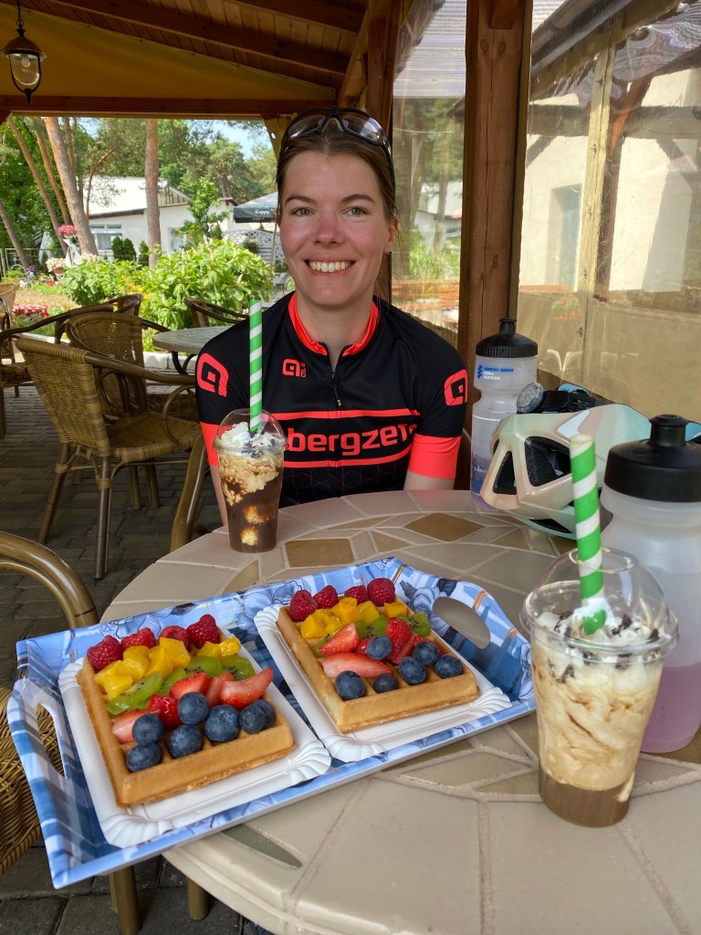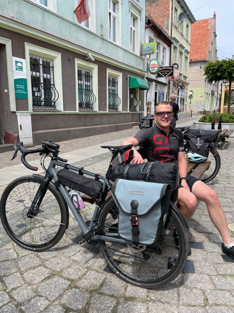 In unserem Seniorenhotel gab es heute Morgen ein leckeres und reichhaltiges Frühstück mit allerlei Fischspezialitäten, Salaten (u.a. ein feines Rote Bete Carpaccio) und mit Sahne und Beeren gefüllten Pfannkuchen. Beim Auschecken wurden wir noch einmal kritisch beäugt. Pünktlich um neun (das erste Mal auf dieser Tour) standen wir auf dem Hof und haben unser Gepäck aufgeladen. Die Beine haben sich beim Losfahren ein bisschen schlapp angefühlt (insbesondere vor dem Hintergrund, dass uns noch 120 km bevorstanden), aber das Gefühl hat sich im Angesicht der Sonne und der geilen (es gibt kein anderes Wort dafür, sorry) Radwege schnell verflüchtigt! Die ersten 45 km legten wir in Küstennähe auf top ausgebauten und asphaltierten Radwegen zurück. Insbesondere ein Streckenabschnitt, der spielerisch (ein paar Kurven und Auf und Ab) durch ein Waldstück vor Mielno führte, hat es uns angetan. Damit gibt es für die Region um Kołobrzeg herum von uns eine klare Empfehlung als Urlaubsregion für Radsportler (auch mit Kindern, weil die Mehrheit der Radwege von den Autos getrennt ist bzw. sogar autofrei ist). Nach etwas über zwei Stunden haben wir in Lazy (haha, das passt ;)) Waffelpause gemacht. Das tat gut! Bis Darlowo (ehemals Rügenwalde, übrigens der Herkunftsort der Familie, die die Firma Rügenwalder Mühle gegründet haben – bester veganer Fleischsalat) schmolzen die nächsten 30 km nur so dahin, auch dort haben wir nochmal eine kurze Verschnaufpause gemacht, ehe wir zu den letzten 45 km angetreten sind. Hier sind wir etwas vom Eurovelo abgewichen und über ein paar pommersche Dörfer gefahren, die erstaunlich belebt und jung wirkten. Der für den Nachmittag angekündigte Regen blieb zum Glück aus, sodass wir trocken und glücklich um kurz nach 16 Uhr unsere Unterkunft bei Ustka erreichten, eine Pension inmitten eines ruhig gelegenen Ferienhausgebietes. By the way, wir haben heute wieder so viele Baustellen gesehen, dass Lennart meinte, es sei kein Wunder, dass in Deutschland keine polnischen Handwerker mehr aufzugabeln seien ;). Eben haben wir noch lecker Polnisch gespeist in einem gemütlichen Lokal etwa einen Kilometer von der Pension entfernt – mehr war nach heute nicht mehr drin…