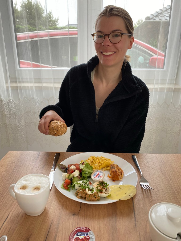 - Das liebevoll angerichtete Frühstück heute morgen im Hotel (Villa Lima in Ustka), in dem wir unsere Fahrräder über Nacht ins Zimmer stellen durften.