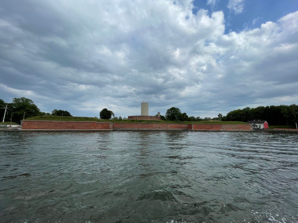 Vom Solidarność Denkmal ging es für uns dann ans Ufer der Motława und zwar nördlich vom AmberSky Riesenrad, wo man etwas ruhiger umgeben von neu errichteten Gebäuden (erinnert ein bisschen an die Hafencity) bei einem kühlen Getränk oder Kaffee relaxen kann. Von dort aus ist es über zwei Brücken (erst die Wapienniczy Brücke und dann die Hebebrücke nach Olowianka) nur ein Katzensprung zur Baltischen Philharmonie. An der Marina hinter dem Nationalen Maritimen Museum konnten wir einige Yachten bewundern, ehe es für uns über die Wyspa Spichrzów (Speicherinsel) zum Fähranleger am Grünen Tor ging, von wo aus wir in Richtung Westerplatte starteten.