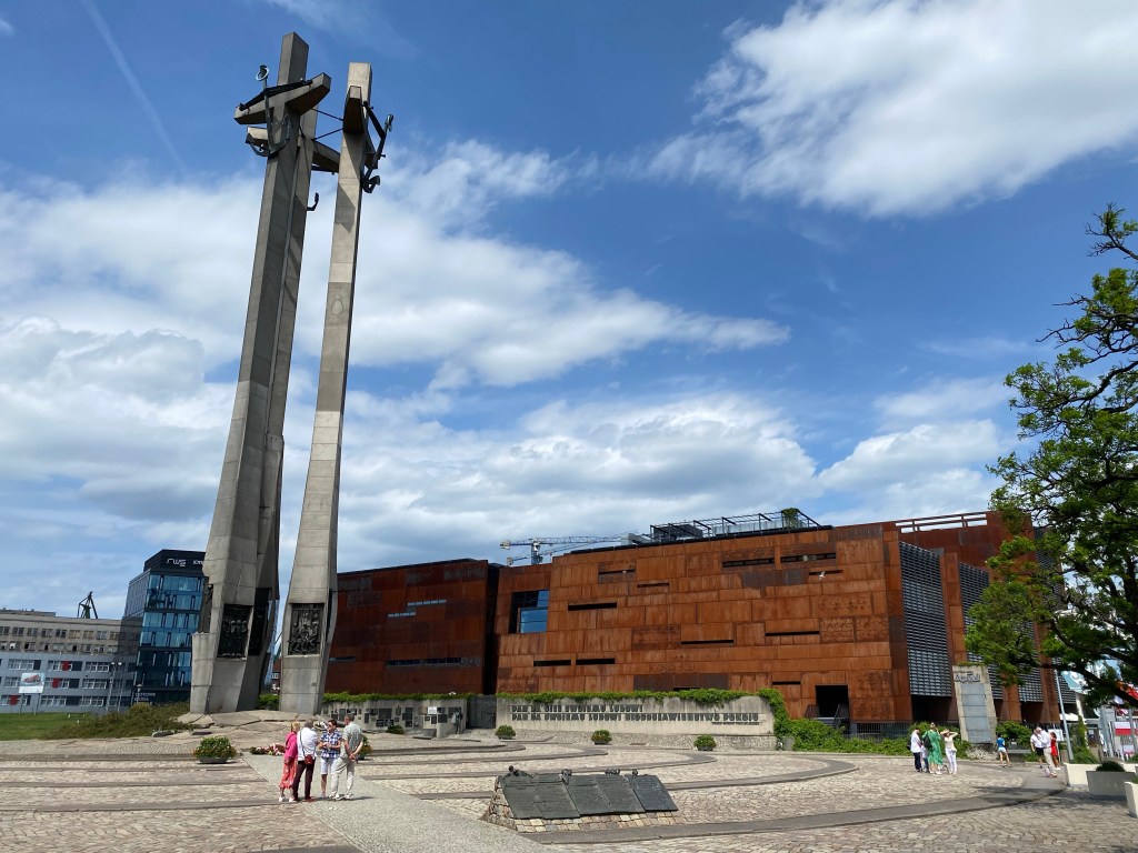 Da die Sonne ganz schön brannte und uns nach Schatten war, spazierten wir vom Rand der Altstadt zum Europäischen Solidarność Zentrum, in dem ein Museum untergebracht ist, das die Geschichte der gleichnamigen polnischen Gewerkschaft beleuchtet, die 1980 aus einer Streikbewegung heraus entstand. An diesem Ort erinnert auch ein Monument an die Arbeiter der Werft, die 1970 bei Protesten gegen Preissteigerungen getötet wurden. Die Ausstellung mit Audioguide ist sehr interessant und interaktiv und gibt Einblicke in die jüngere Geschichte Polens, die im deutschen Geschichtsunterricht nicht unbedingt im Fokus stand. Zudem ist das Gebäude aus architektonischer Sicht beeindruckend. Wir finden: Nicht nur ein Notnagel für Regentage, sondern ein Muss für jeden Danzig-Besucher, um das heutige Polen ein bisschen besser zu verstehen!