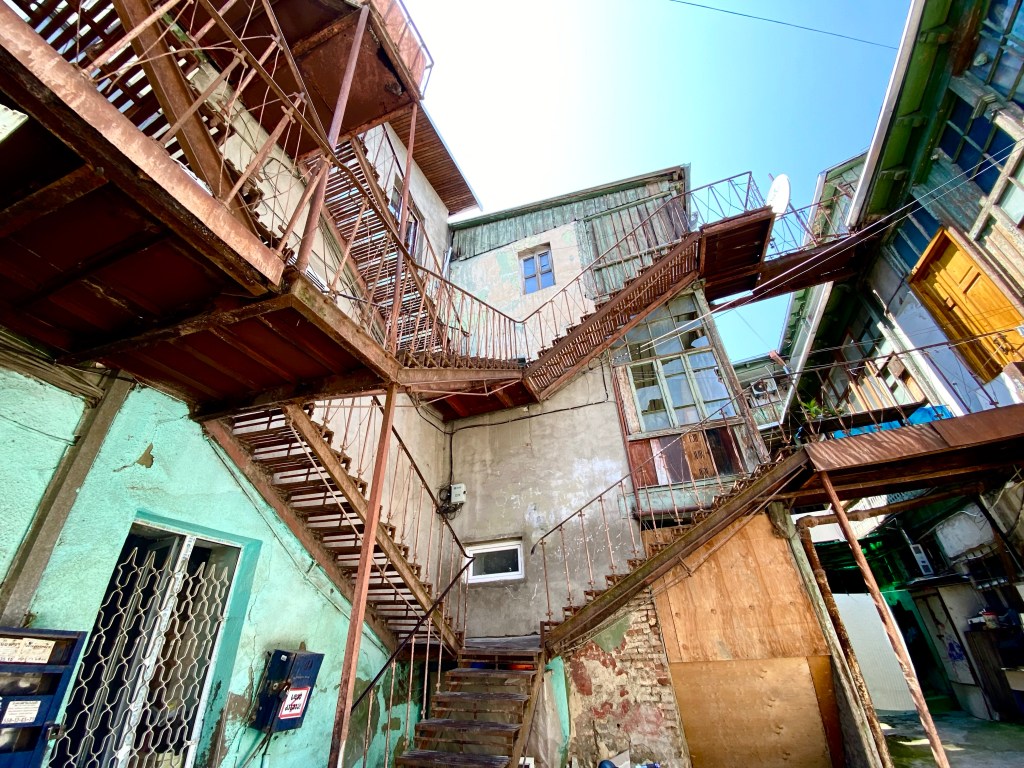Weiter ging es in Richtung Altstadt, die mich ein bisschen an die Altstadt von Kaunas erinnert – alles bröckelt ein bisschen vor sich hin, an vielen Ecken wird renoviert, aber irgendwie hat es trotzdem Charme. Hier lernten wir, warum so viele Häuser von außen Treppen haben, die an die Treppen von Hogwarts erinnern: in der Sowjetunion wurden die ursprünglichen Besitzer enteignet und der Wohnraum neu aufgeteilt. Diese kleinteilige Aufteilung ist bis heute geblieben.