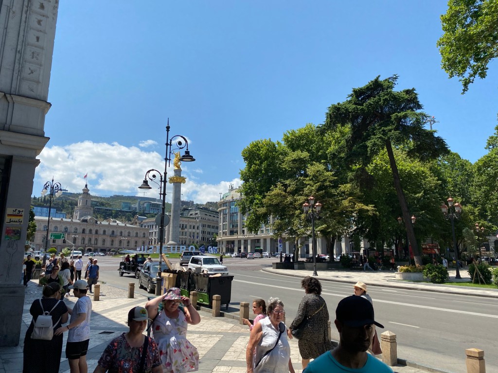 Nach unserer sehr langen Fahrt von Mestia nach Tbilisi – insgesamt 10 Stunden – sind wir gestern Abend nur noch todmüde ins Bett gefallen. Ich hatte ehrlich gesagt noch einen kleinen Stadtschock – der Kontrast zwischen Swanetien und der pulsierenden Millionenmetropole Tbilisi könnte nicht größer sein, zumal hier im Vergleich zu anderen europäischen Großstädten leider noch sehr viel Autoverkehr herrscht. Aber auf einer Walking Tour haben wir heute interessante, inspirierende und schöne Seiten von Georgiens Hauptstadt entdeckt.