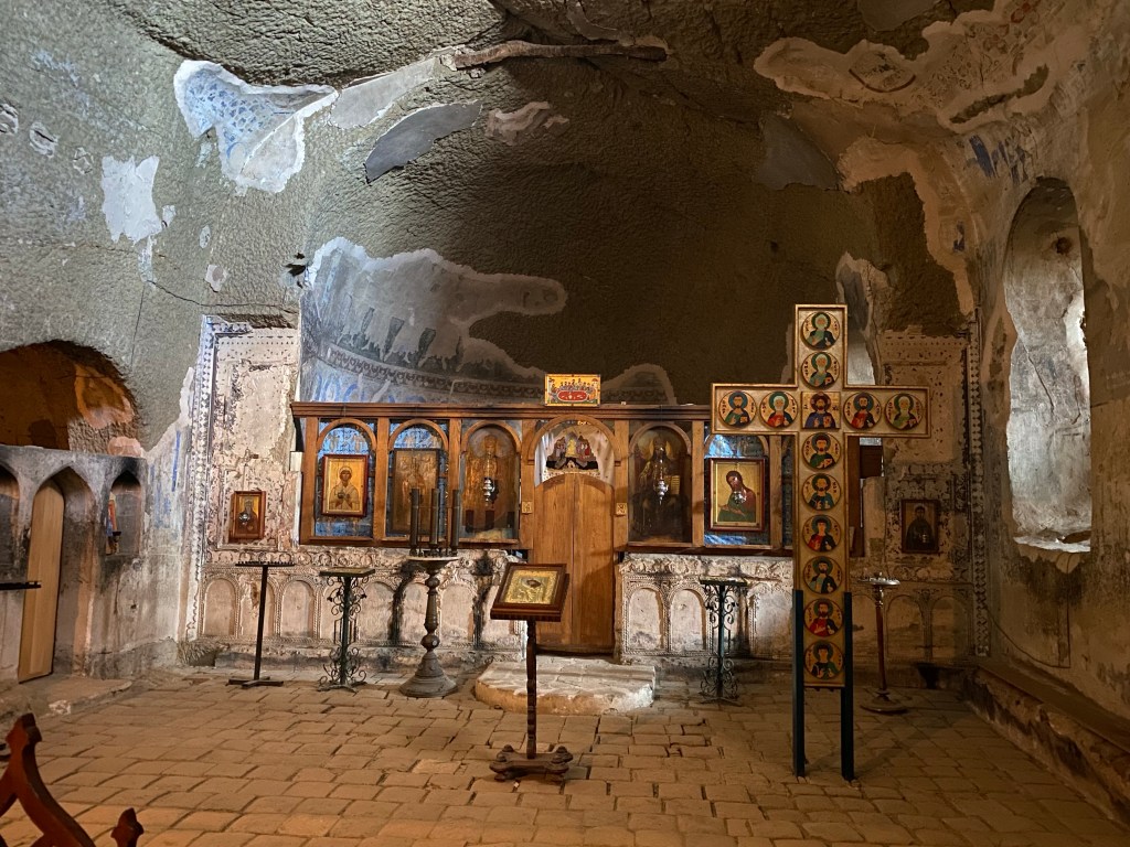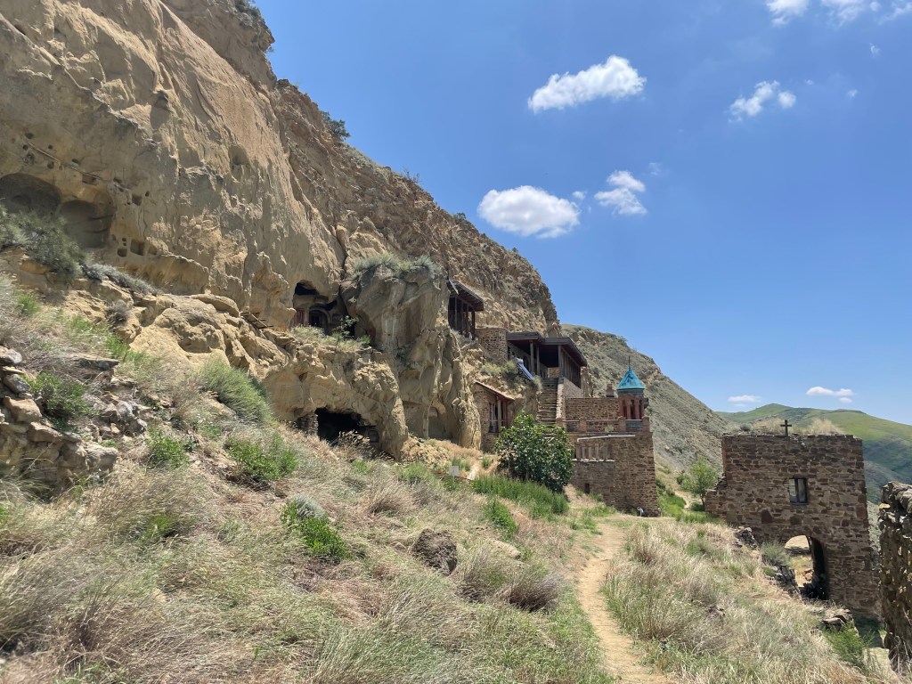 Die letzte Kulturstation war der Klosterkomplex David Gareji, der eigentlich aus mehreren Klöstern besteht, von denen sich einige auch auf dem Gebiet des heutigen Azerbaijans befinden. Auch das Kloster vorher gehört formell dazu. Der Hauptkomplex entstand ab dem 6. Jahrhundert, auch wenn schon weit vorher Menschen hier gewohnt haben.