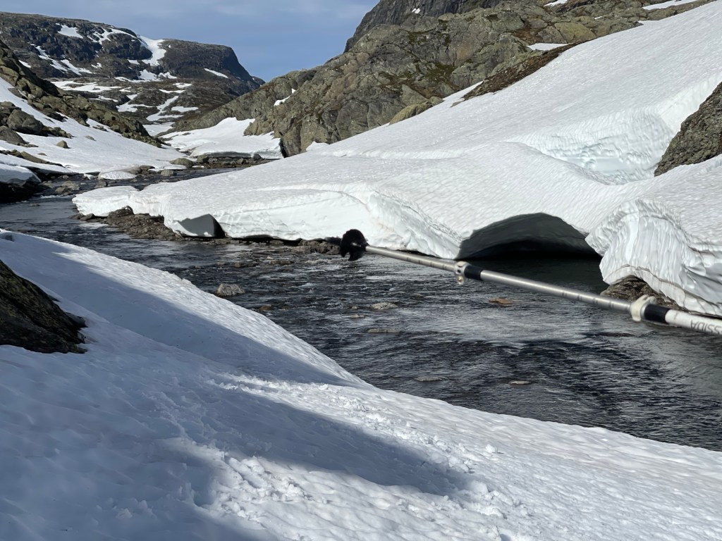 Mit dem Aufstieg zum Bergpass wurde die Landschaft immer dramatischer. Als wir den höchsten Punkt passiert hatten, verengten sich die Berge links und rechts von uns zu einer Schlucht. Auf etwas über 1.100m Höhe erwartete uns die erste Herausforderung in Form einer Flussquerung, die durch sehr hohe Schneefelder am Rand erschwert wurde. Wir kniffelten etwas, überlegten, ob es später möglich wäre, über eine Schneebrücke den Fluss zu passieren, aber dafür waren die Hänge zu steil. Auch ein Umdrehen zogen wir in Erwägung, entschieden uns dann nach reiflicher Überlegung aber dazu, es zu versuchen.