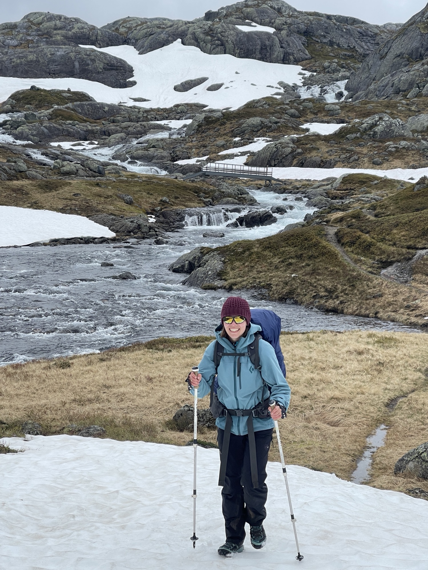 Für mich persönlich stellt das Trekking mit Zelt eine völlige Reduktion auf die menschlichen Grundbedürfnisse dar. Was ist einem am Ende des Tages wirklich wichtig? Sicher ans Ziel kommen, ein Essen im Magen, Wasser, um den Durst zu löschen, Wärme und menschliche Nähe. Wenn ich im Fjell unterwegs bin, bin ich völlig im Moment und zu keinem Zeitpunkt vermisse ich Social Media. Es ist ein so besonderes Gefühl, morgens aufzuwachen und direkt draußen zu sein.