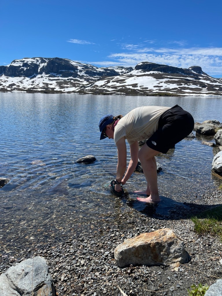 Um halb zwei trafen wir wieder in Haukeliseter ein, holten unseren Autoschlüssel ab und wuschen erstmal unsere Füße in dem eiskalten See.