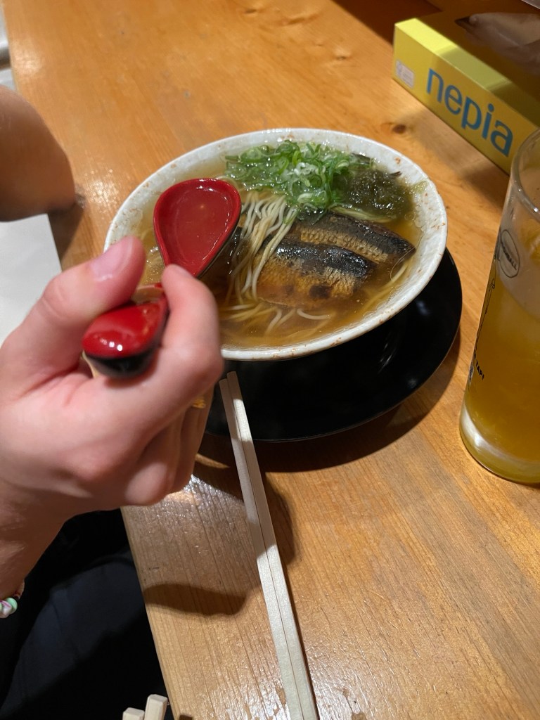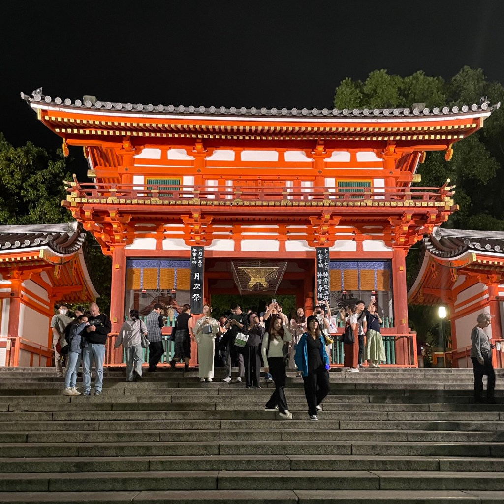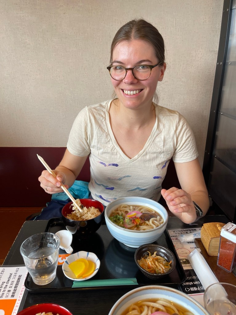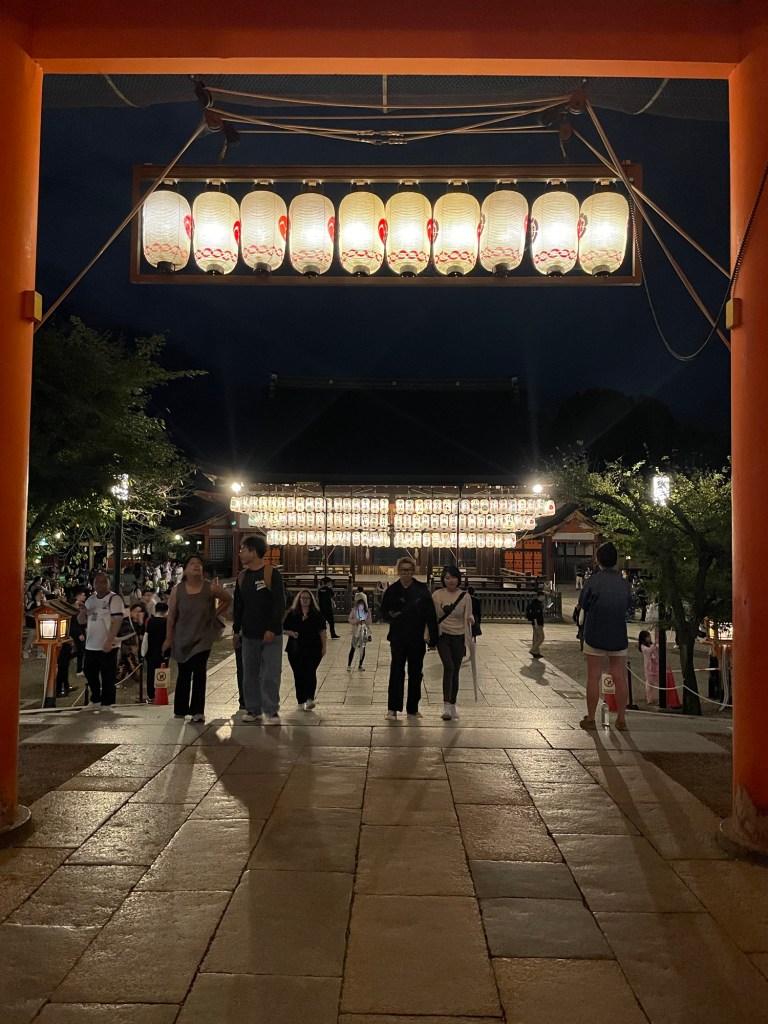 In einer Seitenstraße ab vom großen Trubel fanden wir in einem Minirestaurant mit nur sechs Plätzen, in dem der Koch für alles zuständig ist, eine leckere Ramensuppe (meine war mit Hering, das hat wirklich gut gepasst). Zum Abschluss des Tages gönnten wir uns noch den Trubel am Yasaka-Schrein, der abends schön beleuchtet wird, und gingen zurück ins Hotel. Am nächsten Tag stand ein hartes Sightseeing-Programm vor uns.