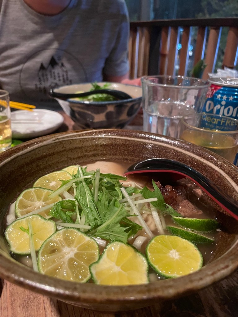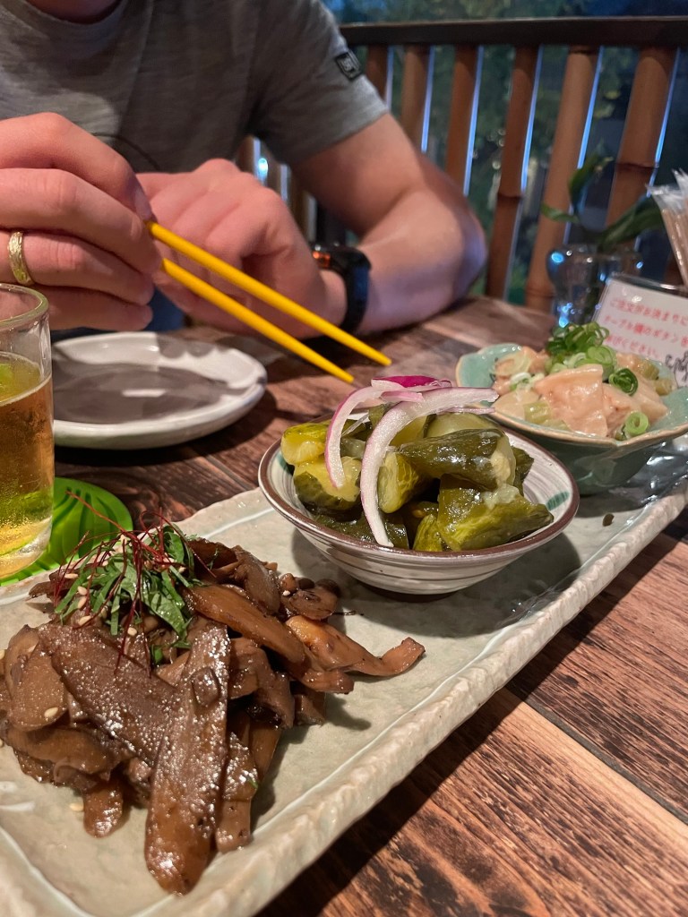 Zum Sonnenuntergang war das Sightseeing für heute beendet (haben unsere Füße auch gesagt) und wir aßen noch sehr lecker in einem japanischen Restaurant, das Okinawa-Küche anbietet (Okinawa ist eine 1.000 km von der Hauptinsel entfernte Inselgruppe im Pazifik).