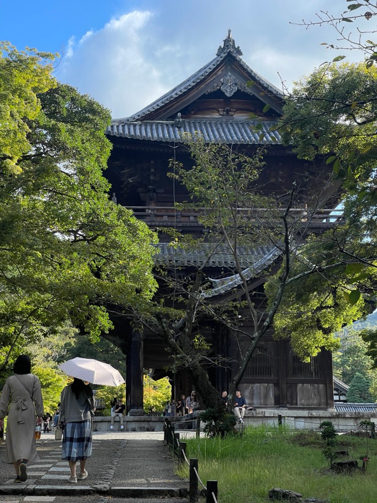 Nach etwa vier Kilometern waren wir wieder endgültig in der Zivilisation angekommen: In Nord-Higashiyama gibt es wirklich schöne Nebenstraßen mit tollen, meist zweistöckigen Wohnhäusern. Hier merkt man nichts davon, dass man sich eigentlich in einer Großstadt befindet. Auf Höhe der Keage-Station ging es weiter in Richtung Nanzen-ji Tempel (vorbei an unzähligen anderen Tempeln und Schreinen, die wir links und rechts des Weges sahen und bewunderten). SchülerInnen in Uniform kamen uns entgegen – es scheint, als hätten die am Samstag nicht frei…