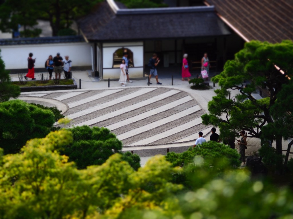 Auf dem populären Philosophenpfad entlang des eines Kanals spazierten – na ja, eher marschierten – wir zum Ginkaku-ji Tempel, unserem letzten Tagesordnungspunkt. Wir waren eine Stunde vor der Schließzeit da, dadurch war es etwas ruhiger und nicht ganz so voll. Der prächtige Zen Garten des „Tempels des Silbernen Pavillons“ war unser Highlight des Tages: Japanische Gartenkunst at its best. Da Bilder mehr sagen als tausend Worte und ich schon viele Worte gesagt habe, hier eine kleine Auswahl unserer Eindrücke: