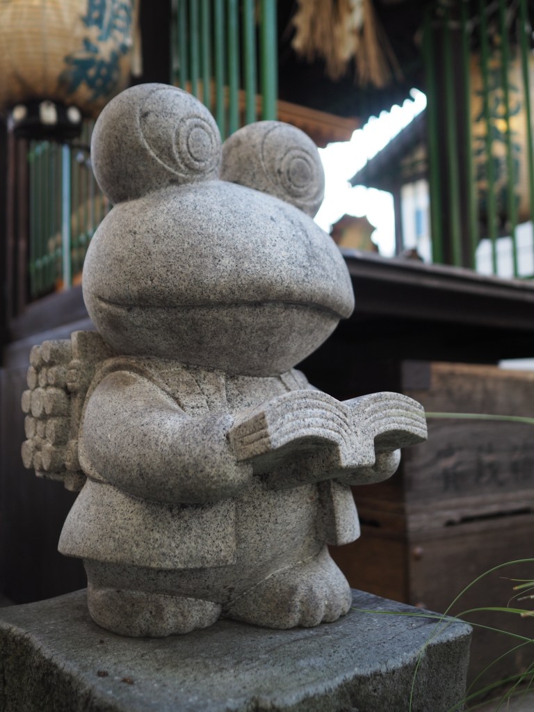 An der Nawate Dori kann man versuchen, alle Frösche, die es dort gibt, zu finden. Diese Straße wird nämlich auch Froschstraße genannt, aufgrund der Frösche, die dieses Areal bewohnten, und der Froschstatuen, die ihnen zu Ehren aufgestellt wurden. Das japanische Wort für Frosch, kaeru, kann auch „Komm zurück“ bedeuten.