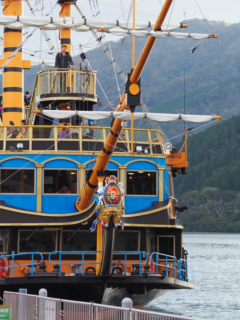 Das Piratenschiff, das uns über den See schipperte, fanden wir zugegebenermaßen etwas merkwürdig – es passt irgendwie so gar nicht zu Japan. Da in Japan zur Abfahrt von Verkehrsmitteln immer irgendeine Musik gespielt wird, hätten wir auf Fluch der Karibik gewettet – stattdessen kam eher romantisches Gedudel.