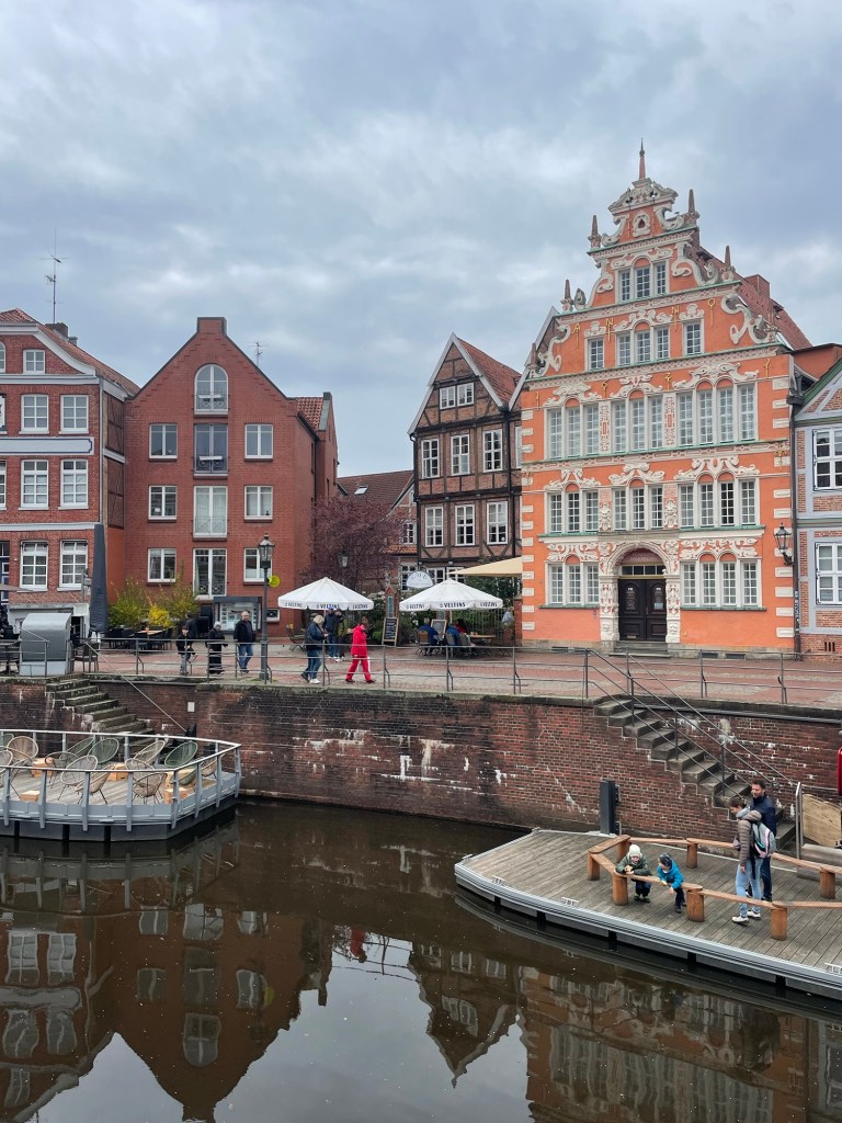 Stades Altstadt ist wunderschön und ich bin mir sicher, einen Ausflug auch ohne Fahrrad wert. Wir genossen einen hervorragenden Flat White, leckere Stullen und zur Krönung eine fluffige Waffel mit einem exzellenten Birne-Mascarpone-Topping – große Empfehlung für das Café Butterbrot und Blattgold!